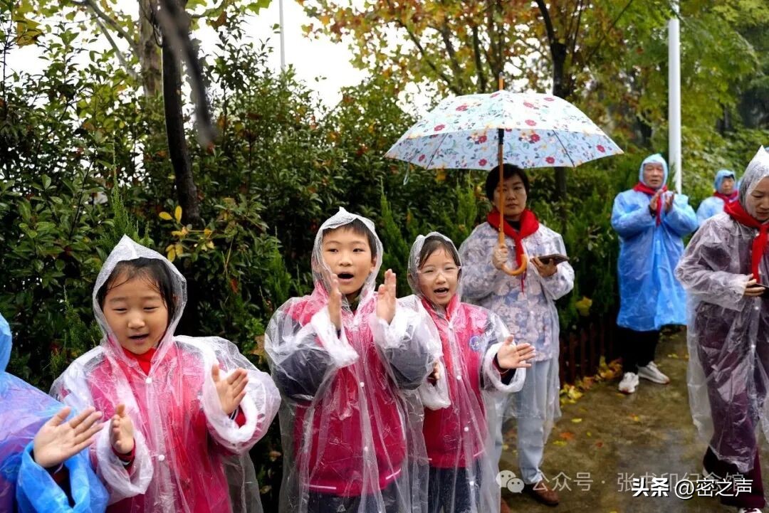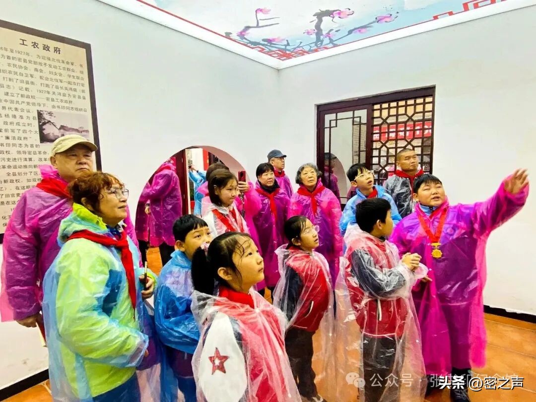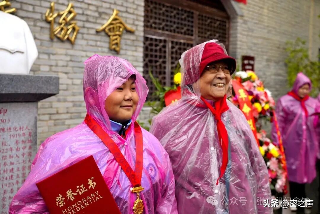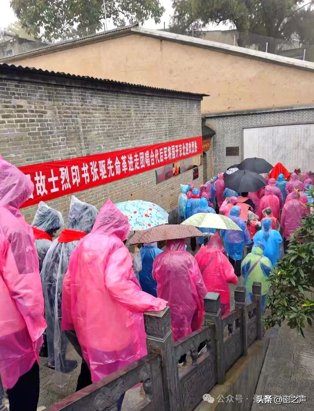 故居门前,“热烈欢迎北京开国将军后代合唱团走进革命先驱张书印故居”的巨幅标语在雨中格外醒目。道路两旁,新密市红军小学、八一红军小学的少先队员们与大隗一初中教育集团的师生代表身着整齐校服,早已冒雨列队等候,迎接北京开国将军后代合唱团成员及社会各届参加活动的嘉宾。稚嫩的脸庞与青春的身影迎着冷风细雨,雨丝打湿衣角、寒意浸透衣衫,却始终保持挺拔姿态,目光满含期待与崇敬。