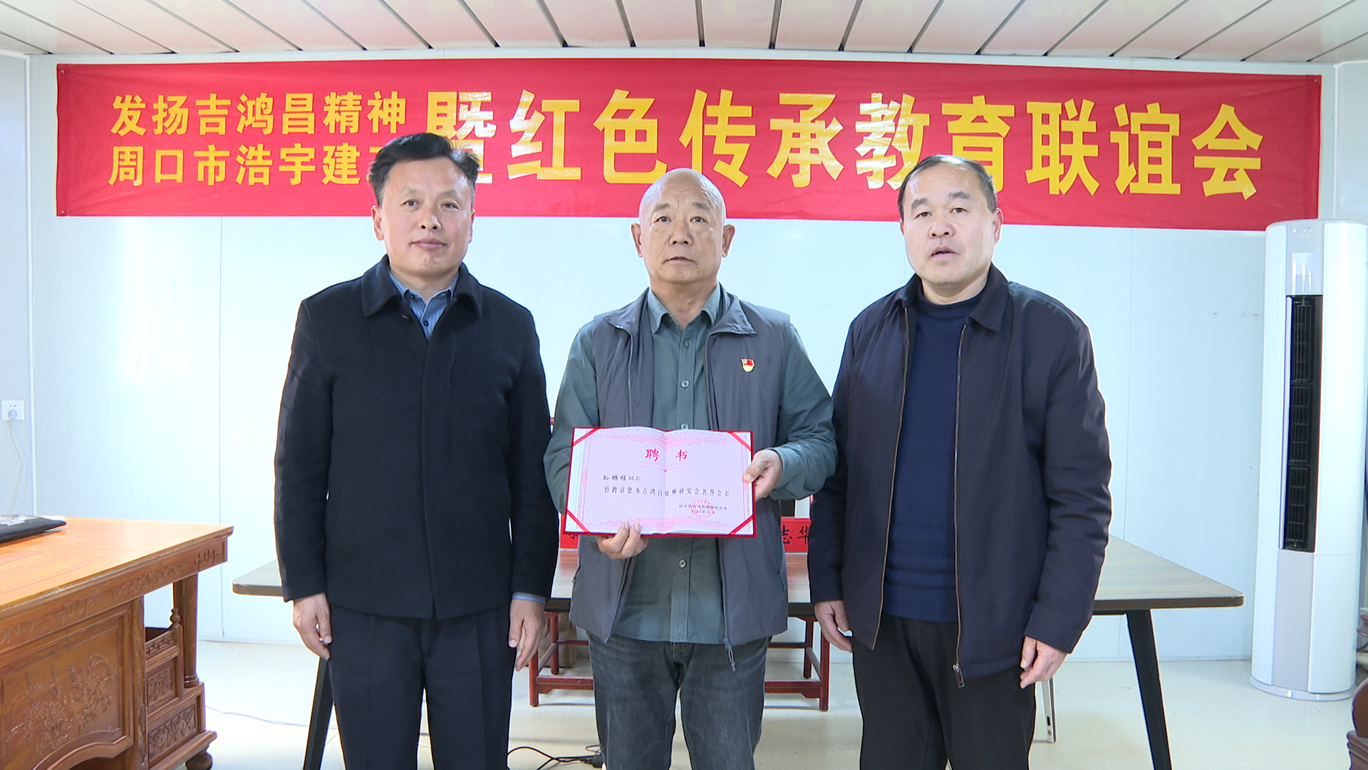 联谊会上,吉鸿昌精神研究会还聘请周口浩宇建工有限公司董事长孙鹏程为名誉会长,并颁发了聘书。吉鸿昌精神研究会还向浩宇建工捐赠了100本《吉鸿昌将军故事集》。