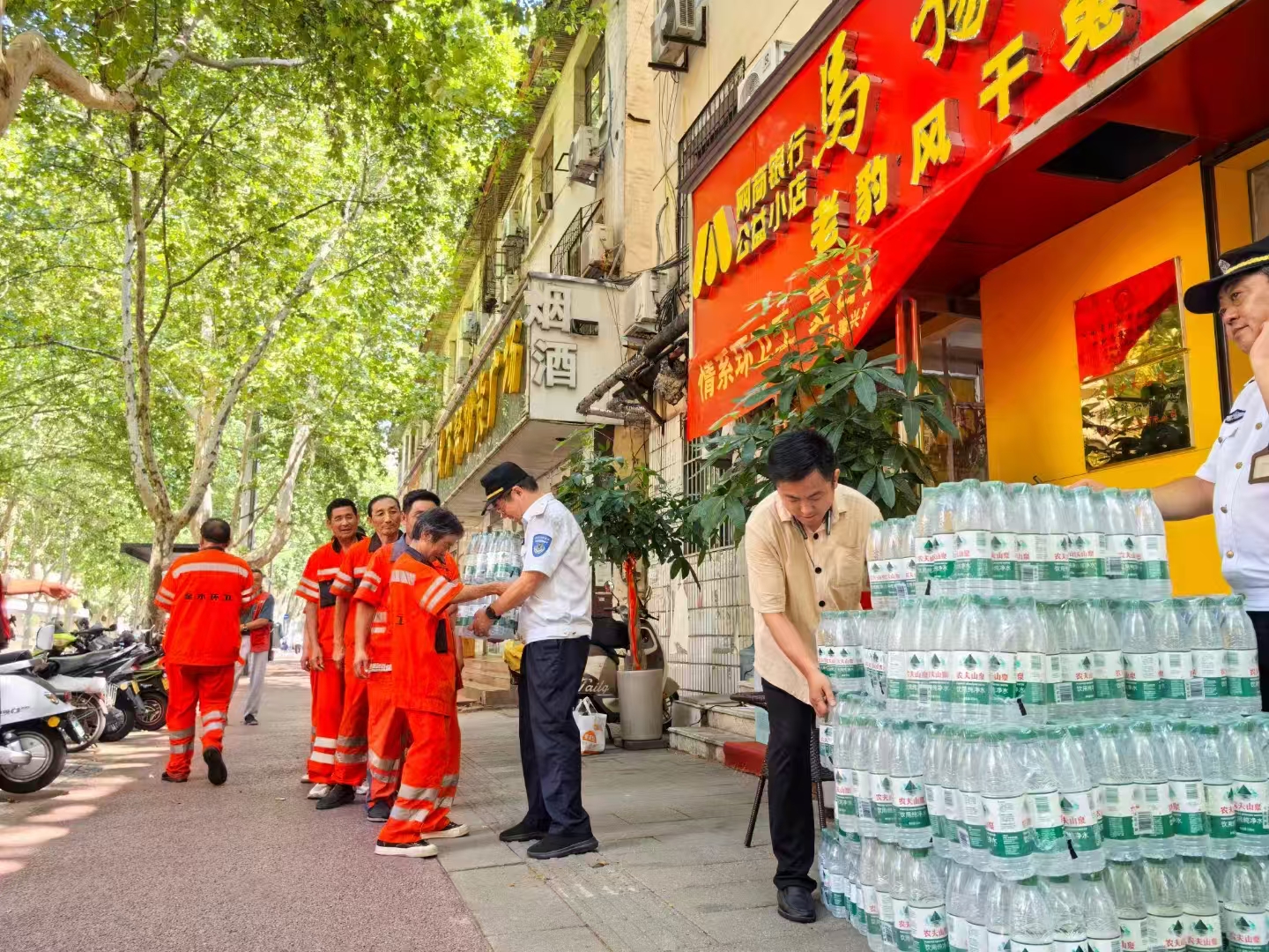 小商户有大爱 1800 瓶饮用水情暖辖区一线劳动者