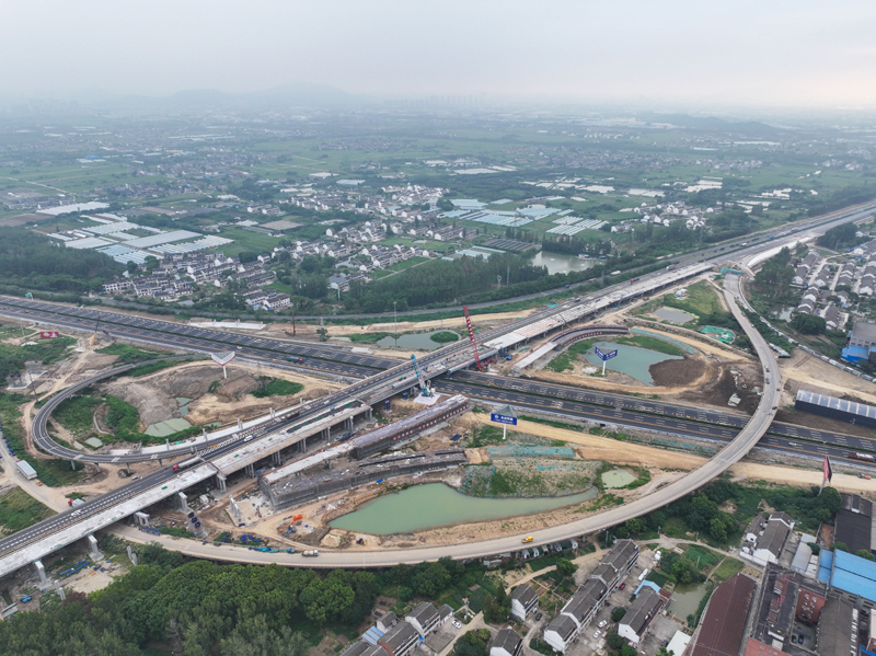 9月13日拍摄的沪武高速公路扩建工程江阴段上跨京沪高速公路钢箱梁架设施工现场(无人机照片)。