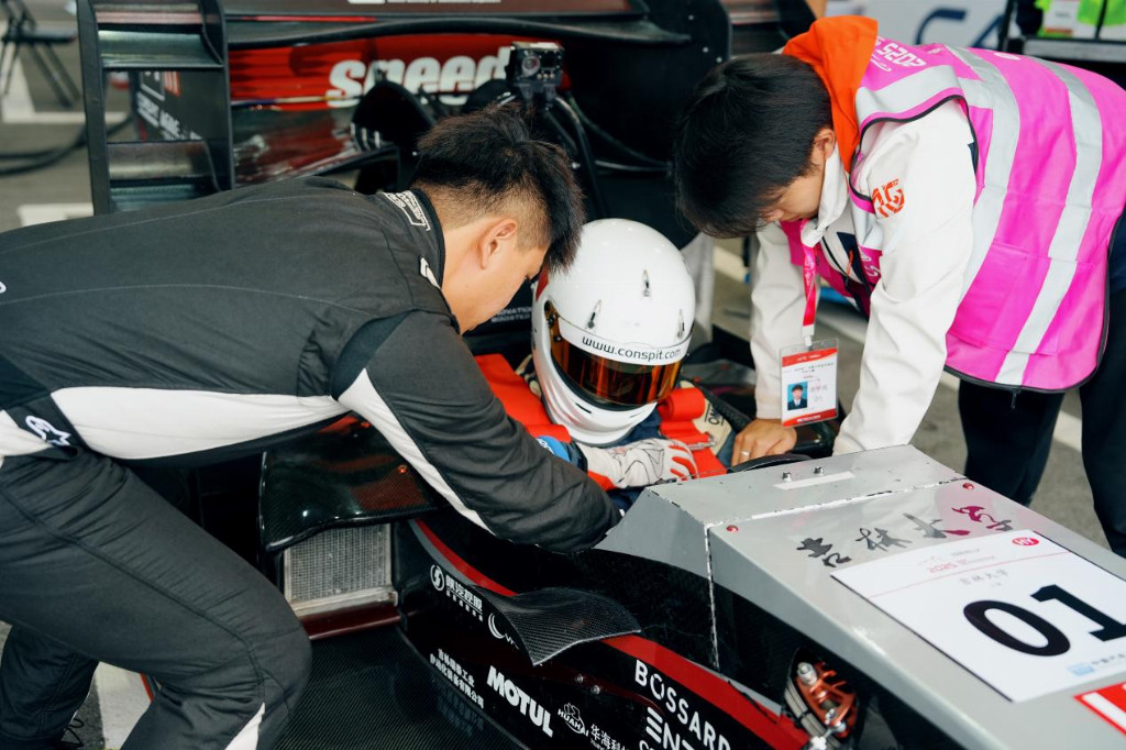 于困局中开新局,以创新驱动破题。“今年我们的空套做得特别好,车的性能也提升了一大截,直线加速能跑进5秒内。”来自河南本地高校河南工学院的太行车队介绍道。他们的赛车不仅优化了空气动力学套件,更在底盘结构上大胆革新,取消了传统的副车架,采用一体式支撑架,并将前减震从直推改为横推,显著提升了车辆刚性与响应。谈及背后的故事,他坦言“经费”是最大的挑战,但笑容随即驱散了阴霾,“不过我们都挺过来了!”