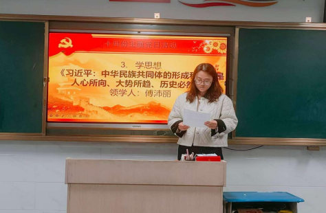 思想引领是党建工作的灵魂。傅沛丽同志领学《习近平:中华民族共同体的形成和发展是人心所向、大势所趋、历史必然》重要论述,从中华民族发展历程的高度,引导党员教师深刻认识铸牢中华民族共同体意识的重大意义,将家国情怀融入教书育人全过程。在意见征集环节,党员同志们围绕支部建设、学校管理等议题踊跃发言,提出 “优化教研活动形式”“完善家校沟通机制” 等多条务实建议,徐松峰同志逐一梳理汇总,搭建起党群连心的 “桥梁”。