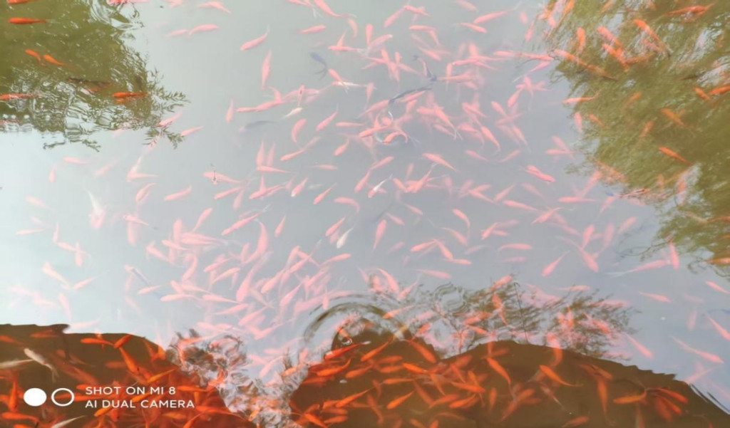 改造升级后的钓鱼项目成游客入园必去的打卡地,每天能接待大批游客享受亲子垂钓乐趣。站在岸边瞭望,清澈的湖水透映着天蓝色的池壁,湖水中央漂浮着碧绿的睡莲叶,数朵盛开的粉紫色睡莲花点缀其中,时不时引来几只蜜蜂留恋忘返,金色的鱼儿在水中自由穿梭,偶尔聚在一起交头接耳,湖岸散布的鹅卵石若隐若现,成为视觉的盛宴,岸边新修的花境错落有致透着诗情画意,在古色古香的售票亭衬托下,像一幅色彩斑斓的油画。
