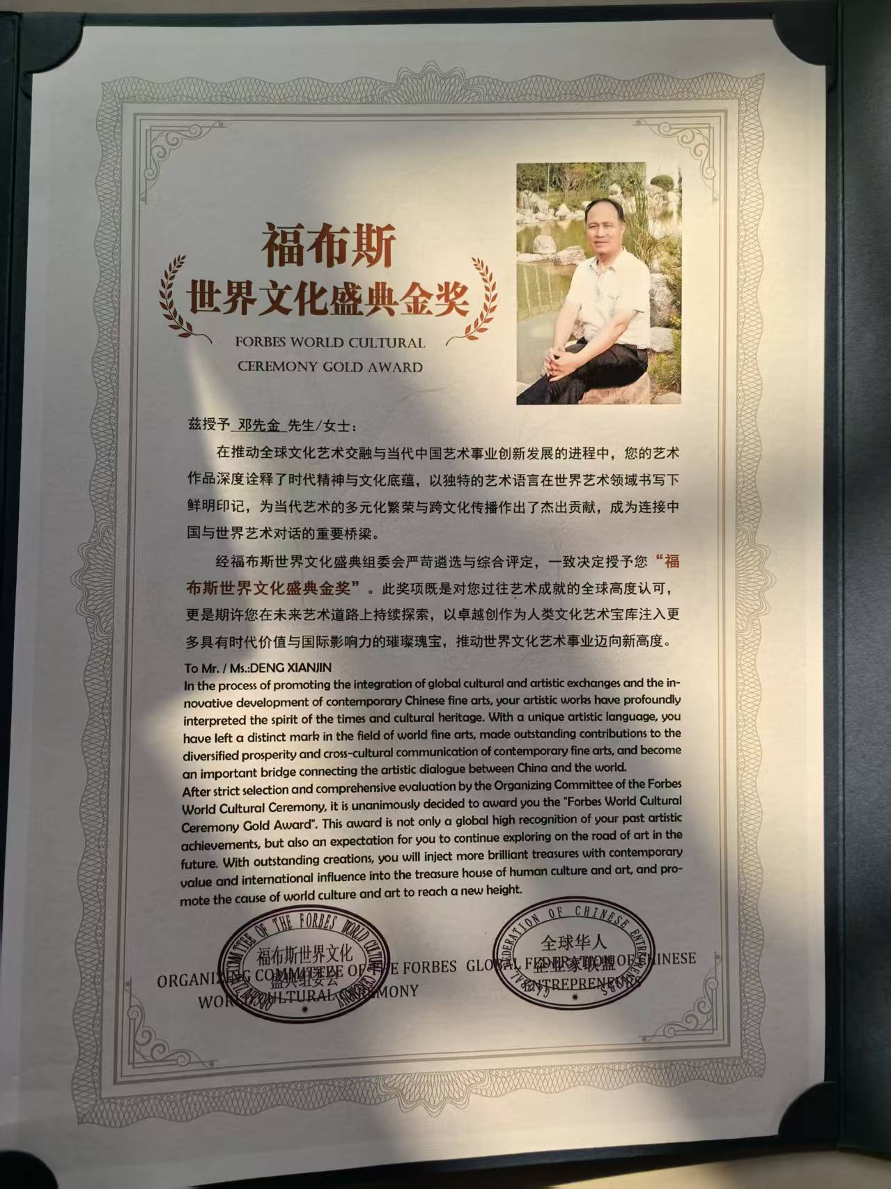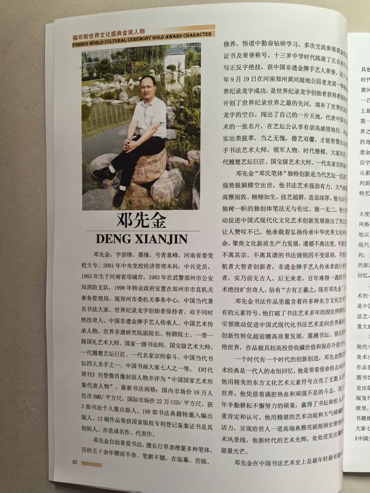 2025年11月邓先金荣获了《福布斯世界文化盛典金奖人物》荣誉称号证书并入编了此书。