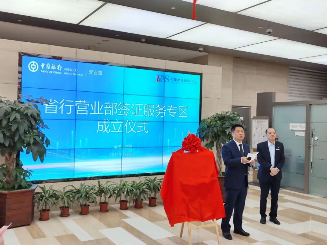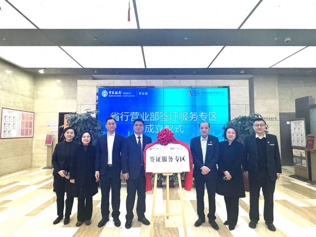 2025年3月4日,河南联合签证中心与中国银行河南省分行合作的签证服务窗口,在中国银行河南省分行营业部正式揭牌。这一合作是一次具有深远意义的创新举措,更是全国首例,标志着双方的合作进入一个新的阶段,将为客户提供更便捷、高效的一站式金融和签证服务。